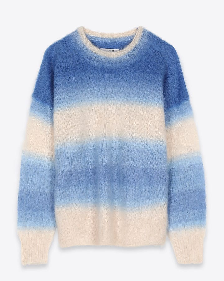 I went to Wasteland twice last week. The first time felt like a waste of my time, finding nothing that I felt I actually need or even want, even if there are loads of “good brands” as we know them from mainstream sources. I left feeling somehow defeated, but also at the same time relieved because I didn’t settle. The second time I went again to try to pass time. After sliding countless hangers from one side to another, I finally found my perfect piece: a neglected and shrunken mohair jumper from Isabel Marant, the Drussel Ombré Jumper, for $58.