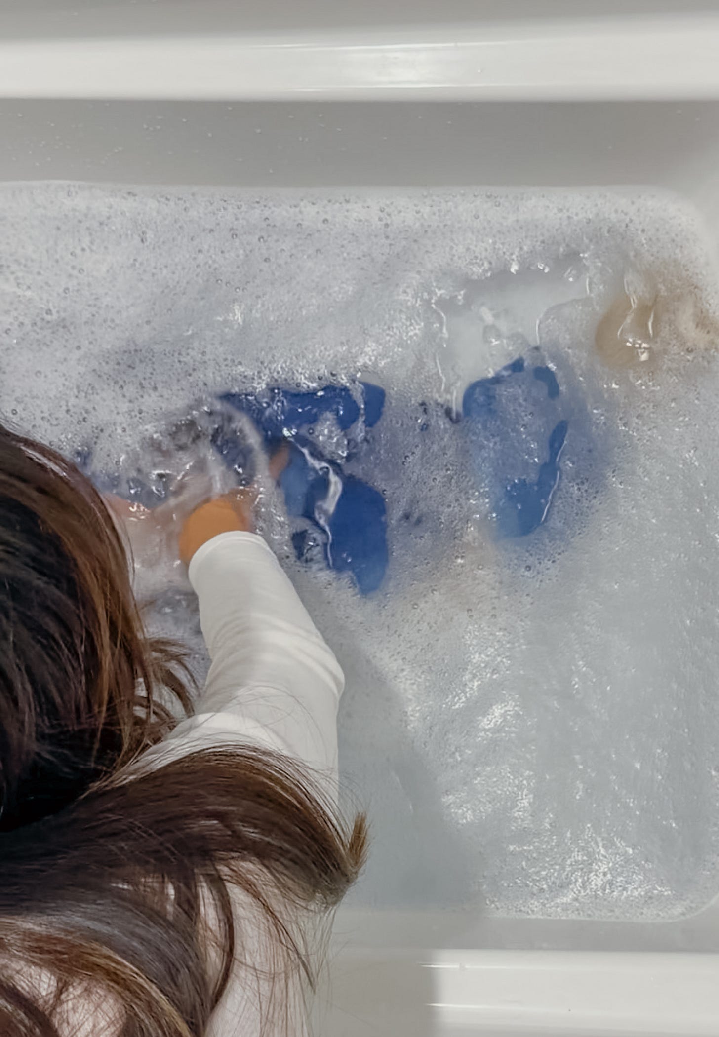 Even though I had a rough idea of what to do, I wanted to double check. The label says “Handwash in cold water with appropriate detergent. Dry flat on towel.” But what does appropriate actually mean? When I did homeroom at school, I learnt how to cook and make coasters. Nobody taught me how to wash my clothes properly, let alone how to revive a shrunken mohair jumper that someone else had already given up on.
